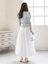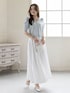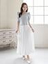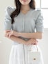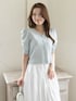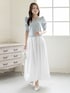 デコルテが綺麗に見えるVネックの半袖ニットを主役に🩵 真っ白なボリュームスカートと合わせることで、まるで初夏のそよ風のような、爽やかで透明感たっぷりのコーディネートに仕上げました🕊️ ふんわりとしたパフスリーブが二の腕を可愛くカバーしつつ、華やかさをプラスしてくれます。 小物はすべてホワイトで統一して、洗練されたクリーンな印象にまとめました✨