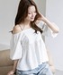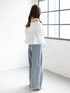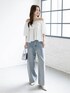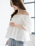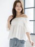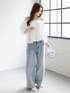 オフショルギャザーブラウスをワイドデニムで合わせた大人フェミニンカジュアルコーデ