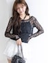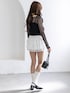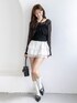繊細な黒のレーストップスに、フリフリの白いティアードミニスカートを合わせた、女の子らしさ満点のコーディネート! かなり甘めなアイテム同士ですが、ブラック×ホワイトのモノトーンで統一することで、シックで上品な「フレンチガーリー」な雰囲気にまとまります✨ 足元は、白ソックス×ダブルストラップパンプスの組み合わせで、少しレトロな足元にするのが今の気分🐾 スタッズ付きのバニティバッグを合わせて、ほんの少しスパイスを効かせました。