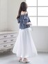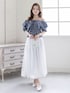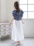 胸元の大きなリボンが可愛い、チェック柄のオフショルトップスを主役に💙 デコルテを綺麗に見せてくれるオフショルダーデザインで、ヘルシーな抜け感を演出しました✨ ボトムスは真っ白なふんわりバルーンスカートを合わせて、初夏らしく涼しげな配色に。 バッグやパンプスなどの小物はすべてホワイトで統一することで、誰からも好感を持たれる清潔感たっぷりのスタイリングに仕上げています🕊️