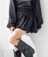 繊細なレース素材が目を惹くオープンショルダートップス。 程よい肌見せデザインで、甘さの中に大人っぽさをプラスしてくれる一枚です。 軽やかに揺れるラインストーンティアードミニスカートと合わせれば、フェミニンさとモード感を両立したトレンドスタイルに。 ブラックでまとめることで、可愛さの中にも洗練された印象を演出できます。 足元はボリュームソールでバランスよく仕上げるのがおすすめ。 デートやお出かけにもぴったりな主役級コーデです。