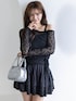 繊細なレース素材が目を惹くオープンショルダートップス。 程よい肌見せデザインで、甘さの中に大人っぽさをプラスしてくれる一枚です。 軽やかに揺れるラインストーンティアードミニスカートと合わせれば、フェミニンさとモード感を両立したトレンドスタイルに。 ブラックでまとめることで、可愛さの中にも洗練された印象を演出できます。 足元はボリュームソールでバランスよく仕上げるのがおすすめ。 デートやお出かけにもぴったりな主役級コーデです。