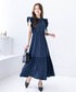 肩口のフリルとリボンが目を惹く、一枚で着映えするネイビーのロングワンピース💙 甘めなディテールがたっぷり詰まっていますが、落ち着いたネイビーカラーのおかげで、ぐっと上品で清楚な印象に仕上がります✨ フロントのボタンデザインが、縦のラインを強調してすっきり見せてくれるのも嬉しいポイント◎ 小物はブラックのハンドバッグとパンプスで統一して、レディな雰囲気に引き締めました。