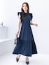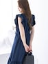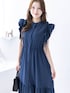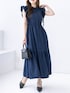 肩口のフリルとリボンが目を惹く、一枚で着映えするネイビーのロングワンピース💙 甘めなディテールがたっぷり詰まっていますが、落ち着いたネイビーカラーのおかげで、ぐっと上品で清楚な印象に仕上がります✨ フロントのボタンデザインが、縦のラインを強調してすっきり見せてくれるのも嬉しいポイント◎ 小物はブラックのハンドバッグとパンプスで統一して、レディな雰囲気に引き締めました。