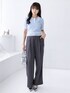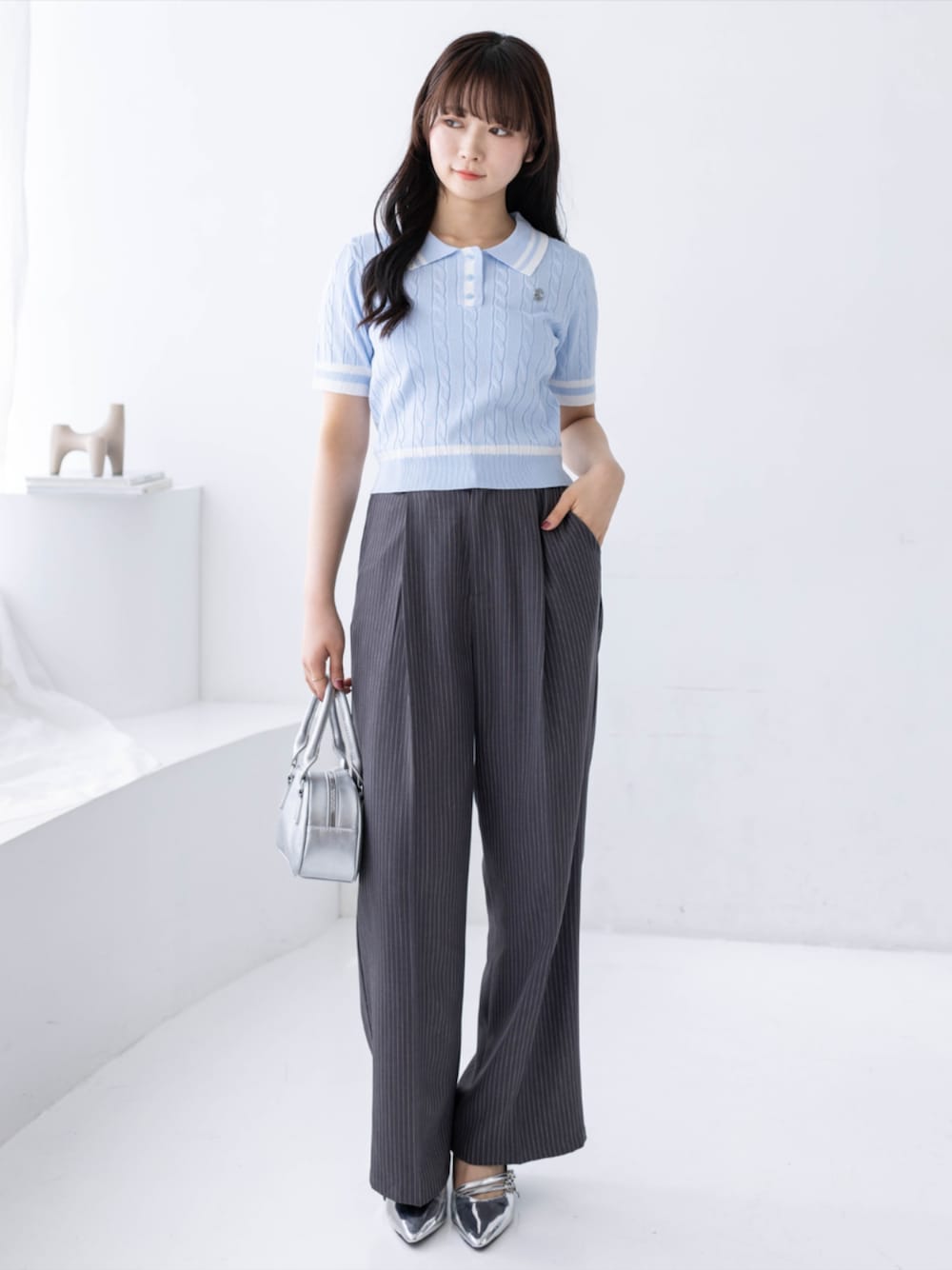 爽やかで上品な印象を与える配色ポロニット。 立体感のあるケーブル編みと、襟元や袖口の配色デザインがクラシカルな雰囲気を演出します。 コンパクトなシルエットで、ウエスト位置を自然と高く見せてくれるのもポイント。 きちんと感のあるストライプワイドパンツと合わせれば、甘さを抑えた大人きれいめスタイルに。 オフィスカジュアルにも取り入れやすいバランスの良いコーディネートが完成します。 一枚で着映えする、デイリーにも通勤にも活躍するアイテムです。