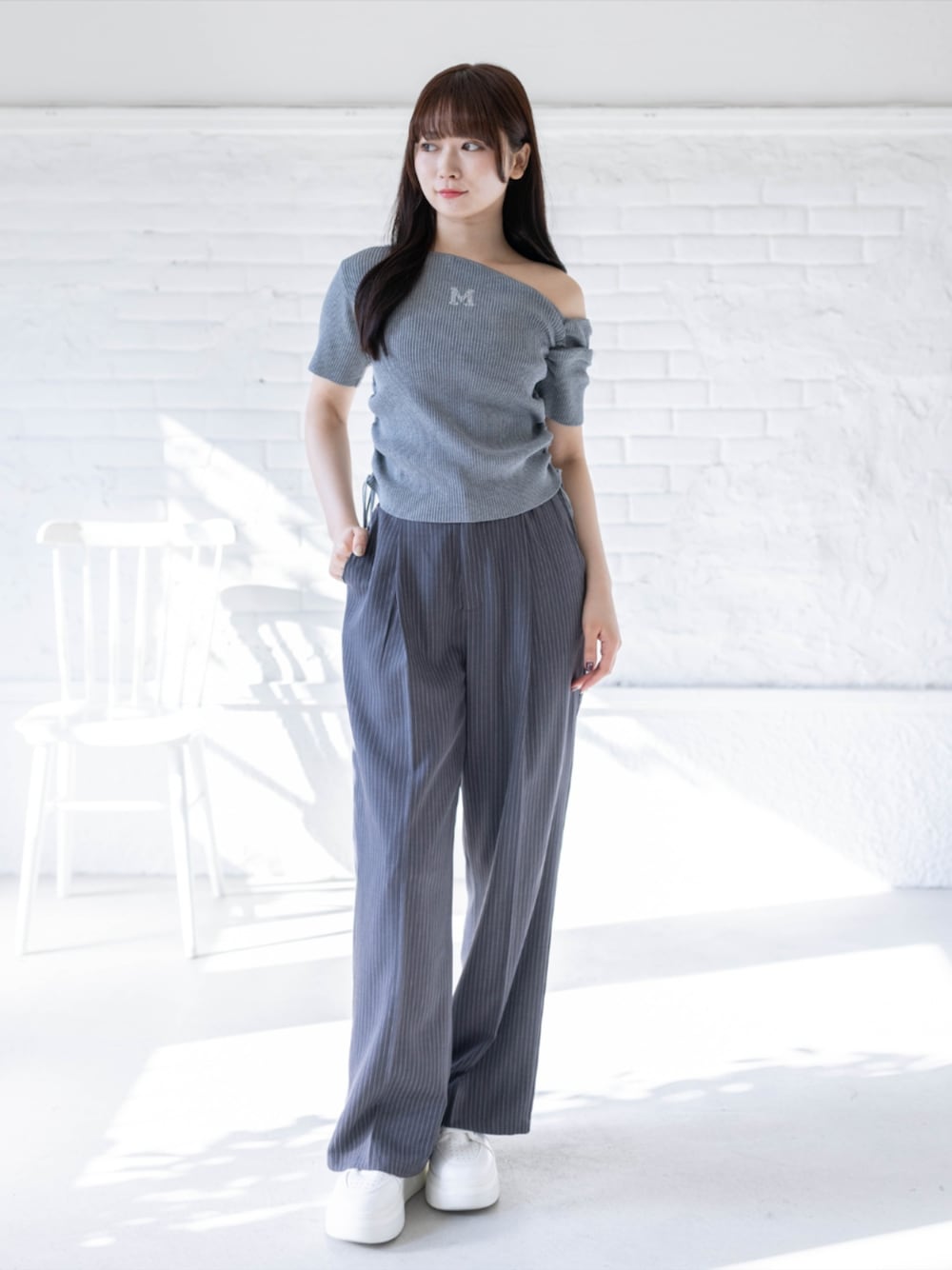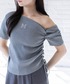 さりげない肌見せが女性らしさを引き立てるワンショルダーリブトップス。 フィット感のあるリブ素材がボディラインをすっきりと見せ、胸元のロゴ刺繍がシンプルな中にアクセントをプラス。 程よい抜け感で、大人っぽい印象に仕上がります。 落ち感のあるストライプワイドパンツと合わせれば、リラックス感のあるきれいめカジュアルスタイルに。 ラフになりすぎず、バランスよく着こなせます。 デイリーからお出かけまで幅広く活躍する、着回し力の高いアイテムです。