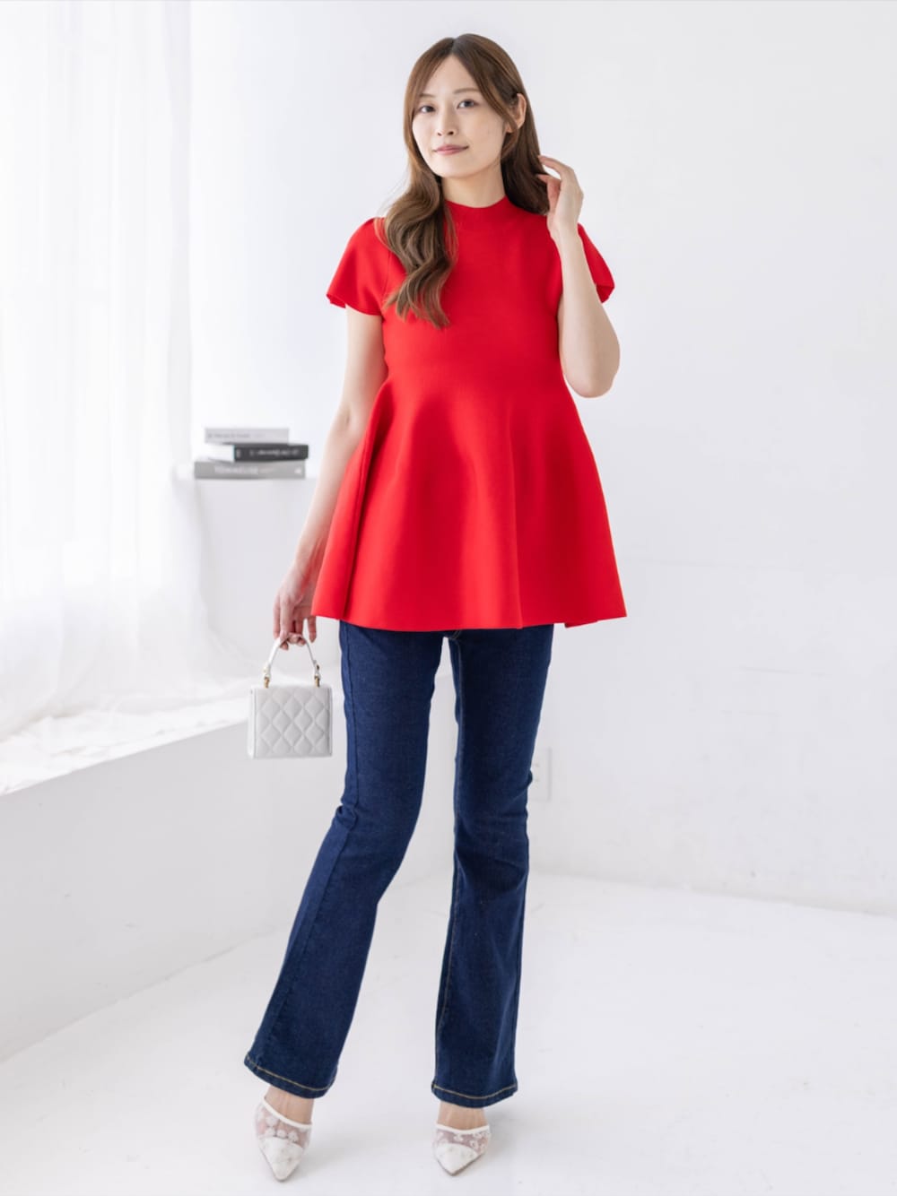 華やかな存在感を放つフレアシルエットトップス。 ほどよく立体感のある素材と、ウエストから広がる美しいフレアラインが女性らしさを引き立てます。 気になる腰まわりをさりげなくカバーしながら、スタイルアップ見えも叶える一枚です。 デニムと合わせれば、甘さを抑えた大人カジュアルスタイルに。 シンプルなボトムと合わせるだけで、コーディネートがぐっと華やぎます。 デイリーからお出かけまで活躍する、主役級トップスです。