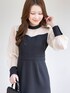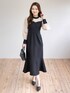1枚で着映えする、ドッキングデザインのワンピースを主役に。 デコルテと袖の程よい透け感が、顔周りをパッと明るく、華やかに見せてくれます✨ 裾にかけて広がるマーメイドラインは、シルエットを美しく見せてくれるのでお気に入りです。 小物は黒で統一して、シックな「お出かけスタイル」に仕上げました。 ディナーやパーティー、オケージョンシーンにもおすすめの1着です🕊️