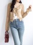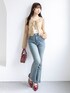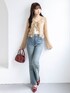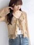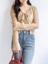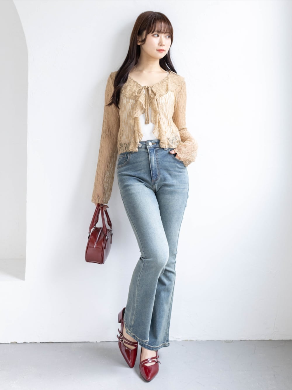 繊細なレースとリボンディテールが目を惹くシアートップス。 軽やかな透け感が女性らしい抜け感を演出し、ふんわりと広がる袖が華やかさをプラス。コンパクトな丈感でバランスよく着こなせる一枚です。 フレアシルエットのデニムと合わせれば、甘さを程よく抑えた大人カジュアルスタイルに。足元やバッグに深みのあるカラーを取り入れることで、シーズンムード漂う洗練されたコーデが完成します。