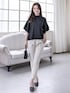 お気に入りのオープンショルダーブラウスで、きれいめパンツコーデ。 ブラック×アイボリーの洗練された配色で、都会的な印象に。 センタープレスのパンツとパンプスで、足元まで抜かりなく。 凛とした強さと女性らしさを大切にした、春のオンスタイルです🌿🕊️