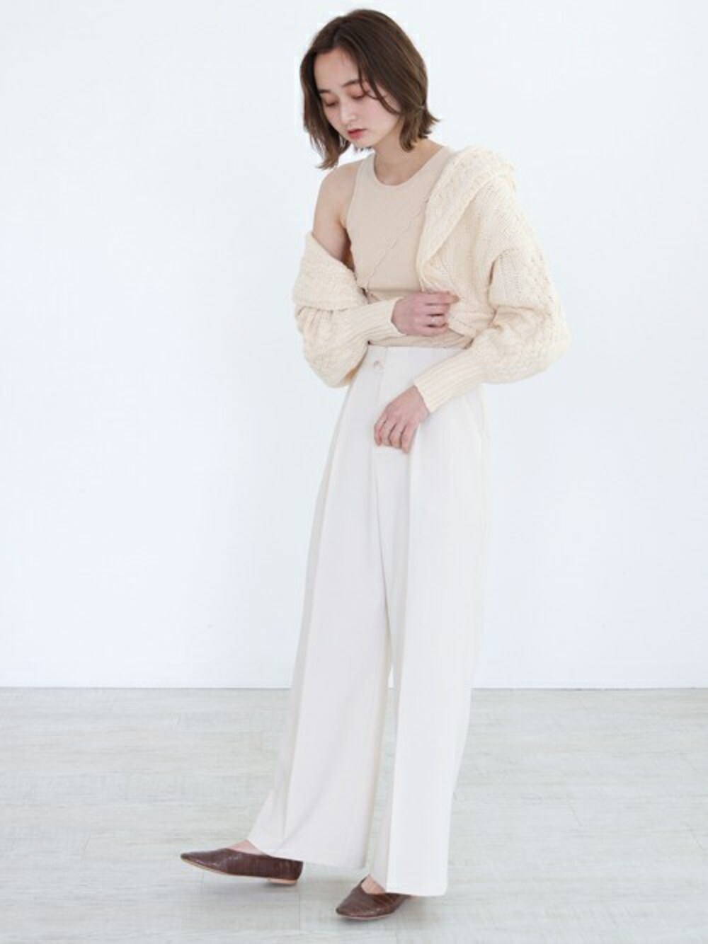 ホワイトとベージュでまとめたワントーンコーデ♡ ナチュラルなカラーで春らしい印象になりました😳