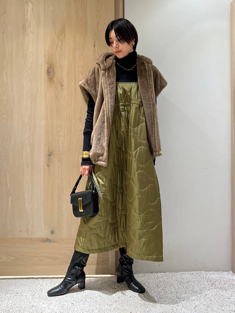 ⭐各アイテムのおすすめポイント  ̄ ̄ ̄ ̄ ̄ ̄ ̄ ̄ ̄ ̄ ̄ ̄ ̄ ̄ ̄ ̄ ̄ 【トップス】 秋冬定番のウールテレコシリーズ✨ リブありですが、いやらしいぴたっと感ではないので1枚でも着やすいです☺︎ 袖口は指抜きもあるデザインです♪ 首元は長めなのでタートルネックですが、窮屈感は少なく弛ませたり折ったりとアレンジもしやすいです😊 【ベスト】 いつもの格好にプラスワンで気分を変えられるミンクライクファーベスト✨ 腕周りもゆとりがあるので厚手のニットなども入れていただけます☺︎ フードの立ち上がりも綺麗なので顔周りも華やかに着ていただけます💫 【ワンピース】 1枚で映えるキルティングのワンピース✨ 脇に紐が付いているためシルエットを変えて着用いただけます☺︎ 172cm.Fサイズ、ショルダー部分を長くして着用でふくらはぎの下が見えるほどの丈感です。長さが気になる方はロングブーツ合わせも◎ アイテムやスタイリングの等のご質問あればお気軽にお問い合わせください☺︎ カレンソロジールミネ新宿店↓ ☎︎ 03-5989-0533 また、インスタグラムも更新しておりますので、よろしければご覧くださいませ😊