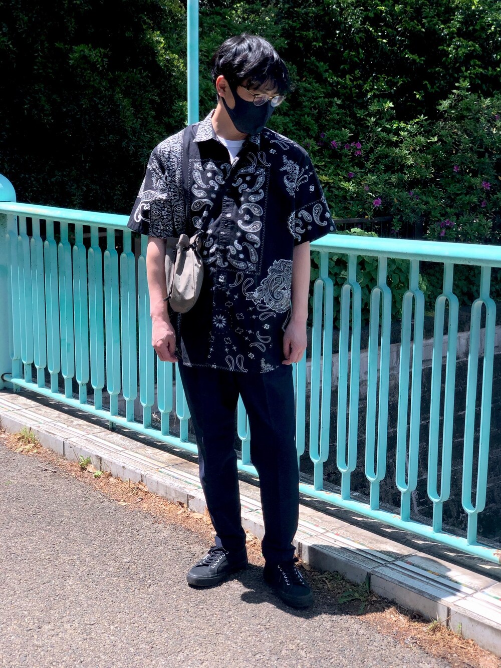 近所を散歩。 久しぶりの柄シャツはZARAの物。 元々オーバーサイズの商品ですが、Mサイズなのでさらに大きめに。 インナーにはユニクロのエアリズムコットンTシャツを着用しています。