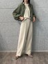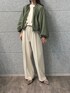バルーンフォルムが今年らしいブルゾン 今回は、秋の定番カラーのカーキを選びました。 マニッシュになりがちなカーキもホワイトと合わせることで、清涼感が出ます◎ 軽くて、しわになりにくいので旅行用にも一着で着回しできるアイテムです♪ ■普段着用するサイズ:トップス01(S)/ボトムス01(S),02(M) ※顔のみAIで生成しております