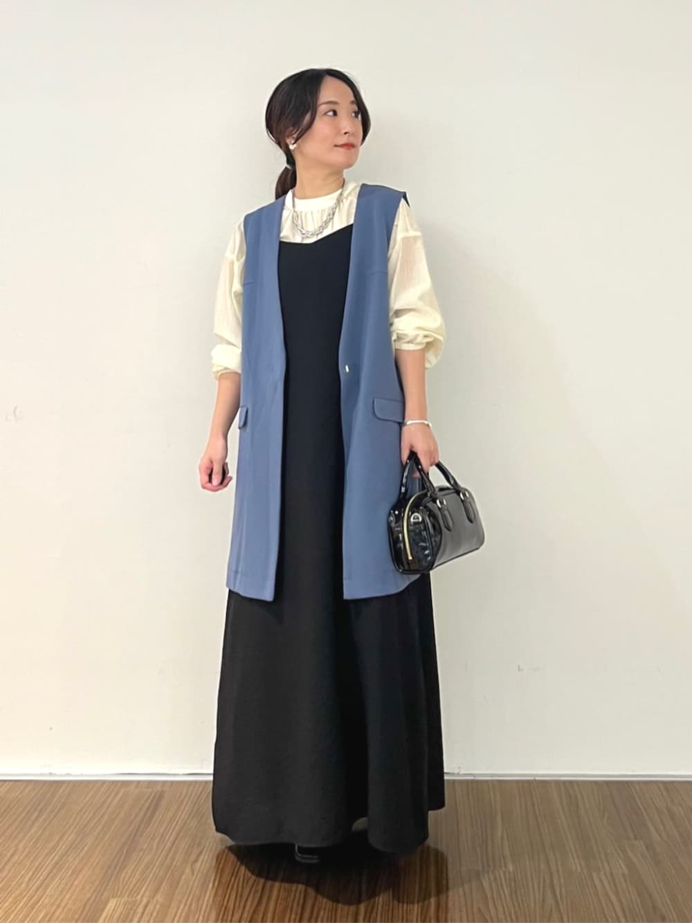 【ブルーのアクセントがこなれ感UP】 秋も着回せるキャミワンピの上に羽織るにはまだ暑いのでジレがおすすめ// 色もブルーを選んであげるとシンプルなお洋服なのにオシャレに見えてサラッと着こなせます。 ⚫︎ジレ 01サイズ着用。 大きめな作りです。 着丈が長いのでお尻までしっかりカバーしてくれます。 いつもよりサイズダウンした方がスッキリ見えると思います。 ⚫︎ブラウス 38サイズ着用。 ふんわりシルエットが可愛いブラウスは軽くて端境期にピッタリです。 イン/アウトどちらも着やすくアイテムとなってます。 ⚫︎ワンピース 02サイズ着用。 ワンサイズ大きいものを着用してます。 元々幅が広めなので購入はいつものサイズをおすすめします! 肩紐調整可能なので着丈の長さは変えられ、小柄さんにも◎