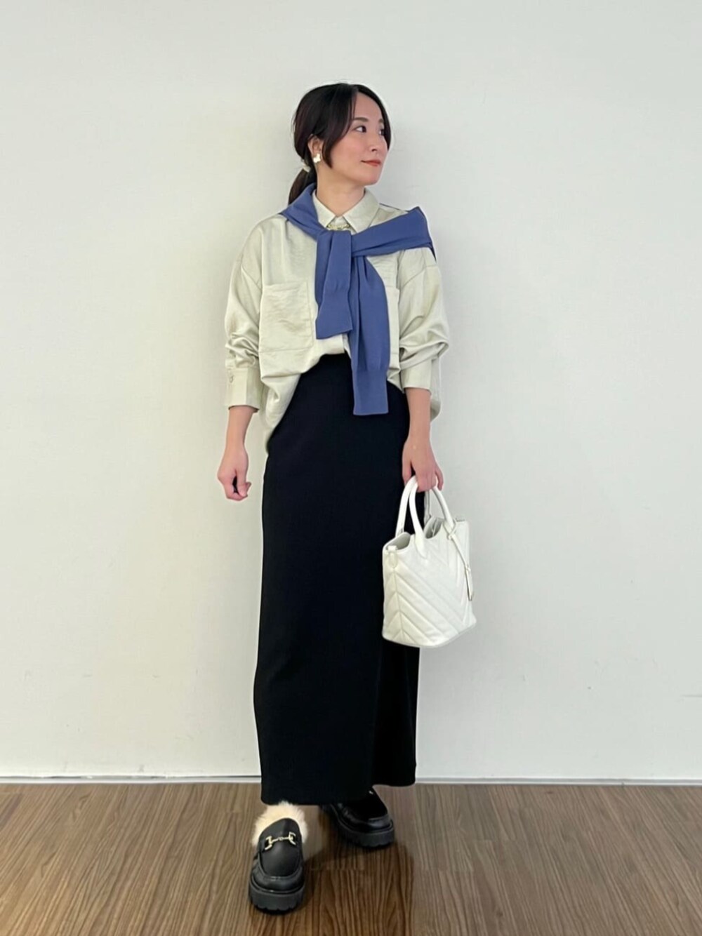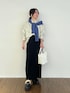 【オフィスorお出掛け】 どちらのシーンでも着れるシャツ×スカートの組み合わせ! 気温対応でカーディガンを肩掛けしてみました。 スタイルアップして見えるのでシャツは前だけインがおすすめです♡ ⚫︎シャツ ゆったりとして見えますが、サイズで作っているので大きすぎず合わせていただけます。 前後差がありお尻が隠れる長さなので安心して着れる長さです♡ 小柄さんおすすめアイテムです♪ ⚫︎スカート いつものサイズより上げてます。 お尻や太ももが気にならなくなるので私はこちらのサイズが安心して履けるサイズです! ウエストはそこまで大きくないです。 ⚫︎カーディガン 今回は着ていませんが、着るとコンパクトでフィットします。 小柄さんにも着やすいサイズ感です。