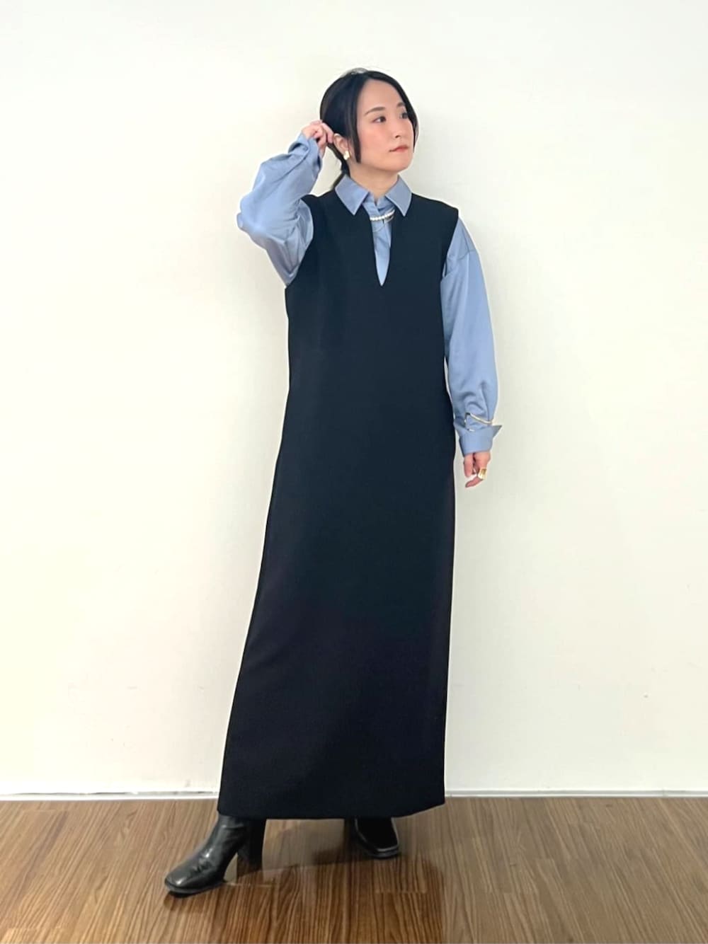 【シャツ合わせでキレイ目に】 まだまだ着れるシャツの着回しコーディネート♪ cloenc大人気のキーネックワンピースと合わせて上げると首元の印象がスッキリとしており◎ 羽織がいらない時期のコーディネートとして、キチンと見え&キレイ目にオススメです。 ⚫︎シャツ 01サイズ着用。 ゆったりとして見えますが、サイズで作っているので大きすぎず合わせていただけます。 お尻が隠れる長さなので安心して着れる長さです♡ ⚫︎ワンピース 01サイズ着用。 着丈の長さはちょうどいいのですが、ポケット位置が低いので小柄さんにはそこが気になるかもです。 シルエットが微妙にズレるので太ももラインにポケットがきて、ヒップ周りがフィットします。