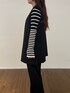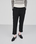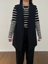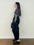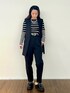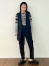 【セットアップ】 ジレ×テーパードパンツのセットアップは鉄板で使える万能アイテム! インナーをニットに変えて秋らしいスタイリングにしました。 ブラックのセットアップはキレイ目に着やすいですが、ボーダーと合わせるとカジュアル感が出てキチンとしすぎず普段使いにも◎ ⚫︎ジレ 01サイズ着用。 サラッと着用しやすいジレは1枚お持ちいただきたいアイテムです。 Vネックラインが綺麗に出てスッキリ感UP 着丈もヒップにかかるくらいなので合わせやすいです。 ⚫︎トップス 02サイズ着用→ワンサイズ リブのフィット感がちょうどよく変なところ(脇や腕周り)が余らないので小柄さんにおすすめです! シルエットが本当に綺麗です。 ⚫︎パンツ 01サイズ着用。 テーパードは着丈の長さがちょうどよく小柄さんおすすめパンツです! 動きやすいけどオフィスにも着れるきれい目パンツは持っておきたいアイテムです。