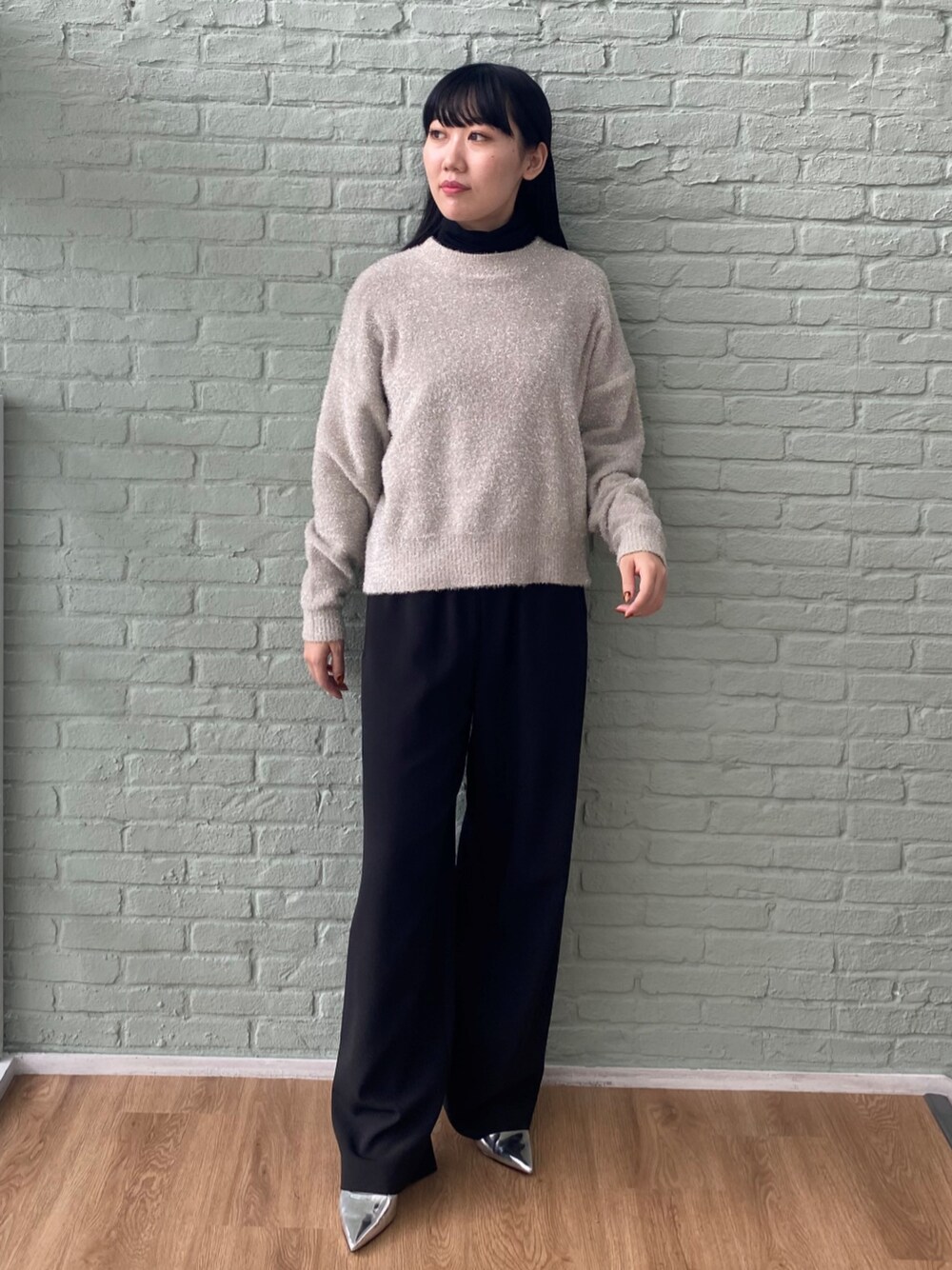 ジャギー×ラメが今っぽいニット♪ きらきらと光るラメが目を引くアイテム。 秋の気温にちょうど良く1枚で着られる厚みです♪ シンプルなデザインで、着回しできて使い勝手も◎ 今回はパンツを選んで大人っぽくまとめました! ■普段着用するサイズ:トップス02(M)/ボトムス01(S),(M)