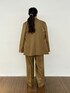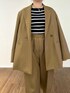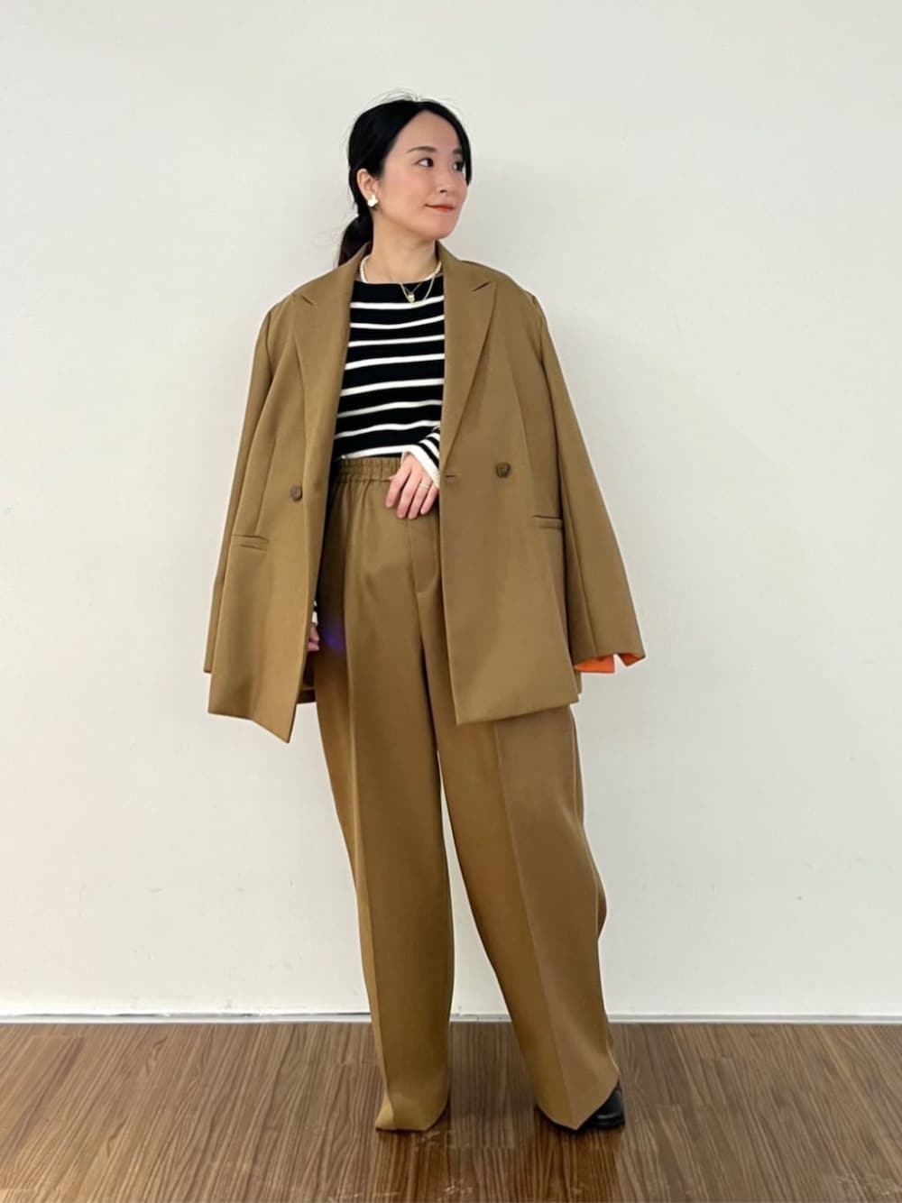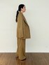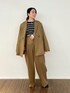 【オシャレ色セットアップ】 キャメルブラウンのお色がとってもステキなセットアップ♡ ジャケットのお袖からオレンジが見えるのもポイントです♪ ゆるっとした抜け感のあるオーバーサイズセットアップなので、小柄さんより普通サイズ以上さんにオススメです。 ⚫︎ジャケット 02サイズ着用→ワンサイズ ダブルジャケットのオーバーサイズなので大きいです! 小柄さんは着れないサイズ感… 背の高い方にカッコよくて着ていただきたいです。 ⚫︎トップス 02サイズ着用→ワンサイズ リブのフィット感がちょうどよく変なところ(脇や腕周り)が余らないので小柄さんにおすすめです! シルエットが本当に綺麗です。 ⚫︎パンツ 01サイズ着用。 今までよりちょっと大きめです。 着丈の長さもあるので、小柄さんはヒールor丈詰めが必要かも。 太めのしっかりワイドがメンズライクに着ていただけます。