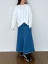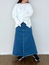ニット ▽ 春らしく軽やかで、何にでも合わせやすい一枚。 薄手でさらっとした着心地がお気に入り! ちょっと肌寒い春の日でも重たすぎず、室内でも暑くならないので快適に過ごせます! シンプルだけど形がきれいなので、首元のアクセサリーを足しておしゃれ感をプラスするとよく映えます。 デニムスカート ▽ 動きやすさと女性らしさのバランスが絶妙なスカート。 前スリットのおかげで歩きやすく、マキシ丈でも重たい印象になりません。 デニム生地ですが、柔らかくてゴワつかないのでとても快適。 カジュアル感がありつつ、ウエスト部分がすっきり見えるのも嬉しいポイント!