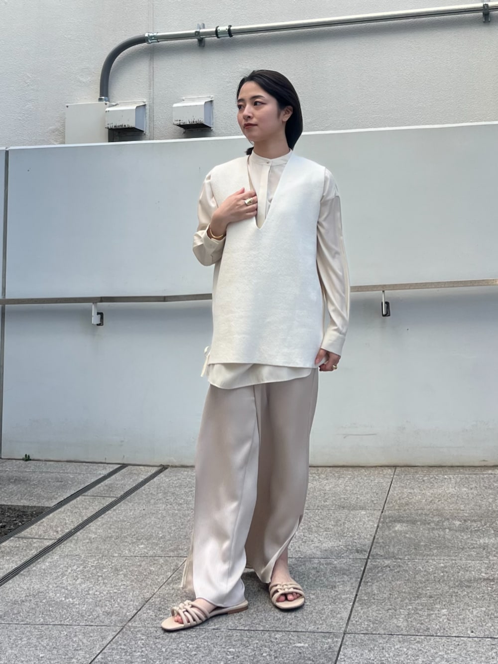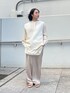 ジレ▽ オーバーシルエットで今っぽさをプラス オーバーシルエットが旬な感じで、一気にトレンド感がアップ! シンプルなデザインなので、Tシャツやデニムなどカジュアルスタイルとも相性抜群です。 丈感が長すぎず短すぎず、スタイルをキープしやすいのがポイント シャツ▽ 上品な光沢感で大人の抜け感を演出 程よい光沢感があり、シンプルながらも上品でリッチな印象。 腰回りやお尻をすっぽり隠せる丈感が骨格ウェーブには嬉しい! サイドのリボンデザインがさりげないおしゃれのアクセントになっていて、1枚でもレイヤードでも楽しめます。 パンツ▽ ラクチン&きれいめを叶える優秀パンツ ウエストゴムで履き心地が抜群、ゆるいシルエットながらも裾のスリットで抜け感も◎ どんなトップスにも馴染むシンプルなデザインで、デイリー使いに最適! 柔らかい生地感で、程よくカバーしてくれるのも好印象。