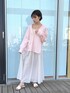 ブラウス ▽ 甘すぎない春らしいピンクが魅力♪ 柔らかいピンクカラーが春の装いにぴったり。深めのVネックラインがほどよい抜け感を生み出し、甘くなりすぎない大人のカジュアルスタイルに仕上がります。ゆったりめのサイズ感で着心地が良く、リラックス感のある一枚です。 スカート ▽ つや感が美しいフェミニンなフレアスカート◎ ふんわりと広がるシルエットが女性らしさを引き立て、長めの丈感で上品にまとまります。さらりとしたつや感がコーデに華やかさをプラスし、どんなトップスとも合わせやすい万能アイテムです。軽やかな印象で、春のおでかけコーデにぴったり!