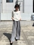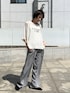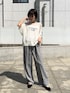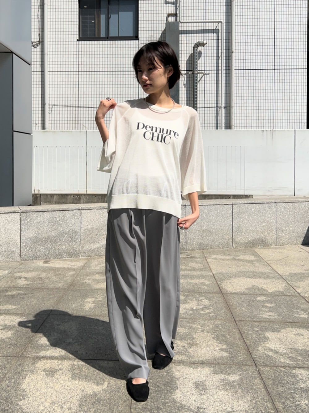 ロゴトップスでカジュアルなお出かけスタイル トップス ▽ シアー感とロゴでトレンド感たっぷり♪ 一枚でゆるっと着られるので、体型もカバーしつつおしゃれに仕上がるのが嬉しいポイント。 さらっと着るだけで抜け感のある大人カジュアルが完成する万能アイテムです! パンツ ▽ 着心地が抜群に良く、さらりとした素材感で暑い季節でも使えるのがうれしい! ベーシックで着回しやすく使い勝手も◎