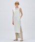 • blouse ペプラムシルエットとzipジレ。 前を止めて一枚できるのももちろんですが、羽織としてアクセントにもおすすめです。 高めのウエスト位置でスタイルアップ効果も◎ •one-piece すっきりシルエットのTシャツワンピース。 スリット入りで動きやすい一枚。 接触冷感なので夏でも快適に過ごせます。 • pants ウエストゴムで楽な履き心地。 ストレートなシルエットなのでレイヤードでもだぼつかず着ていただけます。
