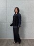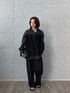 ビスチェを重ねたシャツスタイルでトレンド感のあるスタイリングにしました。 シャツのカジュアルさとビスチェの華やかさがマッチして、リラックスした雰囲気を演出しています。 パンツはゆったりとしたシルエットで、下半身をカバーしつつも全体のバランスが良く、動きやすさも抜群です。 シンプルな小物を合わせることで、洗練された印象を保ちながら、日常使いにもぴったりなコーディネートです。