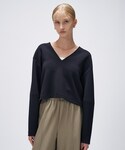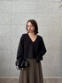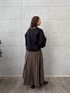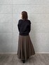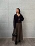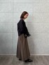 シックな印象のトップスとスカート。 Vネックのトップスが顔周りをすっきり見せ、スカートのフレア感が動きのあるスタイルを演出しています。 全体的に落ち着いたトーンでまとめたので、シンプルながらも存在感◎。 小物を黒で統一することで、洗練された雰囲気に。