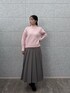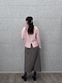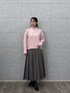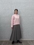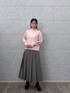 トップス 顔周りを明るく見せてくれる優しい色味がポイント。 ややゆったりめのシルエットで、動きやすく着心地が良いです。 ハイネックデザインが季節感を出し、軽いアウターとも合わせやすいアイテムです。 スカート 縦ラインを強調しつつ広がりすぎないシルエットで大人っぽく仕上がります。 プリーツは一部のデザインなので甘くなりすぎず、大人っぽい印象に。 足元はブーツで引き締めると季節感のあるスタイルに。