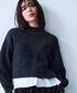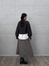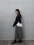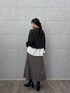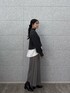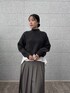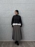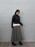 トップス ケーブル編みのニットは、クロップド丈で自然にウエスト位置を引き上げてくれるので、スタイルアップに効果的。 裾からシャツを見せるレイヤード風のデザインが差し色となり、軽やかさをプラスしています。 スカート 落ち着いた色味のプリーツスカートは、トップスのボリューム感とバランスが良く、縦ラインを際立たせます。 フレア感が程よく上品な印象を作り、黒のブーツで引き締めることで全体がまとまります。