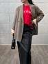 ジャケット 程よいオーバーサイズ感でリラックスした雰囲気を演出。 ロールアップした袖口のニュアンスが軽やかさをプラスし、インナーの赤とのコントラストが絶妙です。 シンプルながらも存在感があり、きちんと感とトレンドを両立できます。 トップス ビビッドなレッドのロゴ入りニットは、おしゃれの主役になる存在感ある一枚。 カラーとロゴのアクセントでトレンド感をプラス。 スカートインしなくてもスッキリ着られる丈感で、動きやすさもありカジュアルに楽しめます。 スカート タイトなラインながらハイウエストのデザインで腰回りをスタイリッシュに見せてくれます。 トップスの鮮やかな色味と質感のコントラストが絶妙なバランスで、大人の洗練されたカジュアルスタイルに仕上がります。
