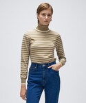 女性らしい柔らかさと冬の軽やかさを感じるコーディネート。 ロング丈のアウターが縦のラインを強調して、カジュアルながらも、上品な印象に。 中のボーダートップスがシンプルになりすぎないアクセントになっています。 バッグやブーツをワントーンでまとめたのも、今年らしいポイントです。