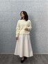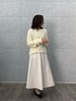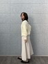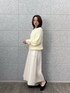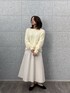 ふんわりとした優しい雰囲気のコーディネート。 トップスのモコモコした素材感が可愛らしく、シンプルなスカートとの組み合わせで女性らしい柔らかさが引き立っています。 フラットシューズを合わせたことで全体にリラックス感が生まれ、程よくカジュアルダウン。 動きやすく、普段使いにもぴったりなスタイルです。