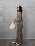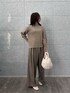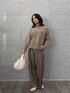 リラックス感がありつつも上品さを感じるコーディネート。 ゆったりシルエットのパンツと短め丈のトップスのバランスが絶妙で、腰回りをすっきり見せてくれます。 今年らしくワントーンでまとめ、ぼやけないようホワイトのバックで引き締めました。