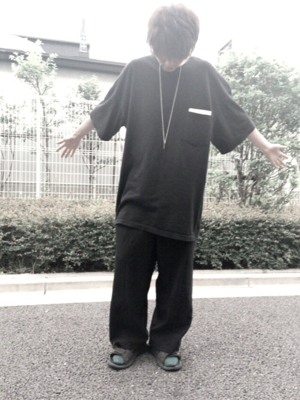 最近暑いですね☺️ 暑いからこそゆったりきて 涼しく見せよう。 私の服は手作りか古着