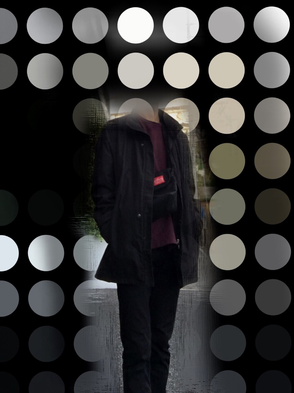 風邪は引いていないですか?大丈夫ですか?寒くなってきているのでコート着るといいですね。全部黒だとダメだと思ったから秋っぽい紫を入れました