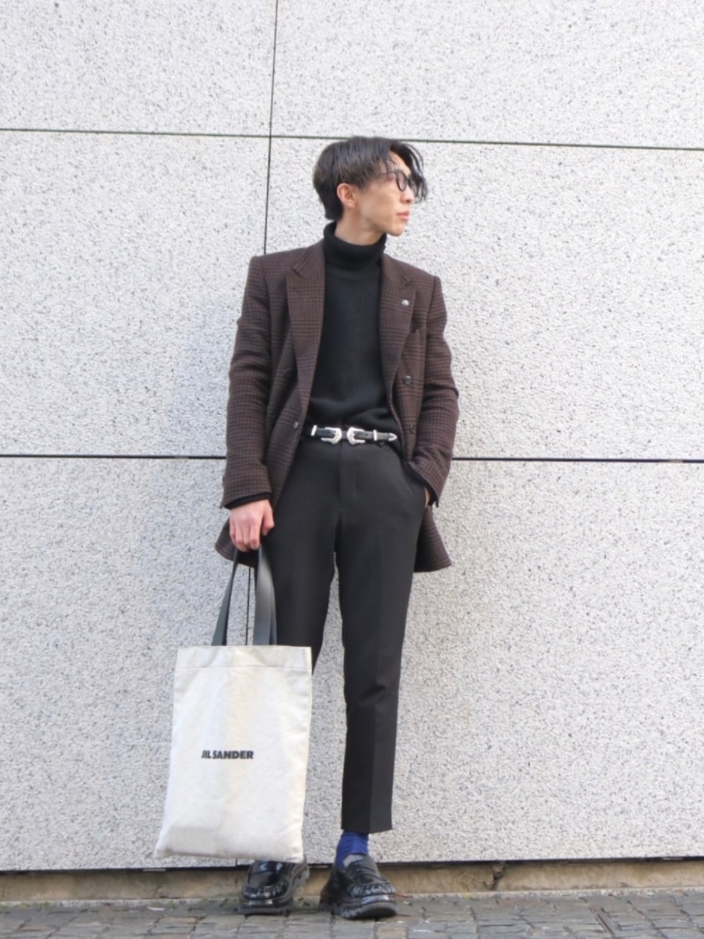 アイウェアがコーディネートを格上げしてくれます。 使用したのはeyevan7285 eyewear...#eyevan7285 jacket...#johnlawrencesullivan tops...#ciaopanic belt...#togapulla pants...#asclo socks...#chicstocks shoes...#shoes53045 bag...#jilsander #amanojaksnap
