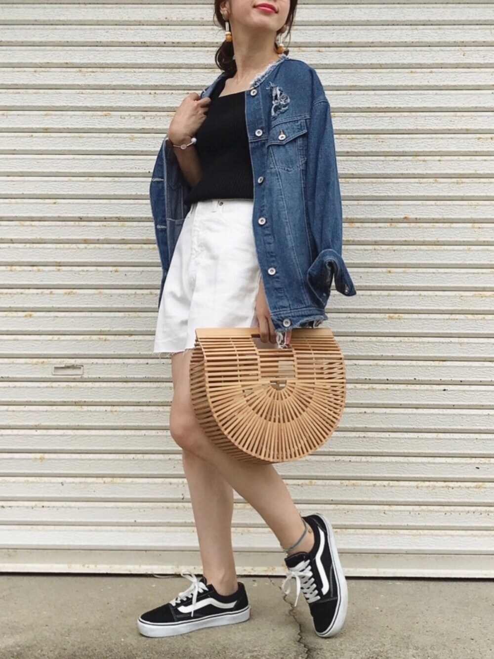モノトーンに デニムジャケットを 羽織りました♫ holidayのショーパンは 好きすぎて イロチ買いしてたやつ♡ Instagram blogも 良かったら遊びに来てください☺︎♡