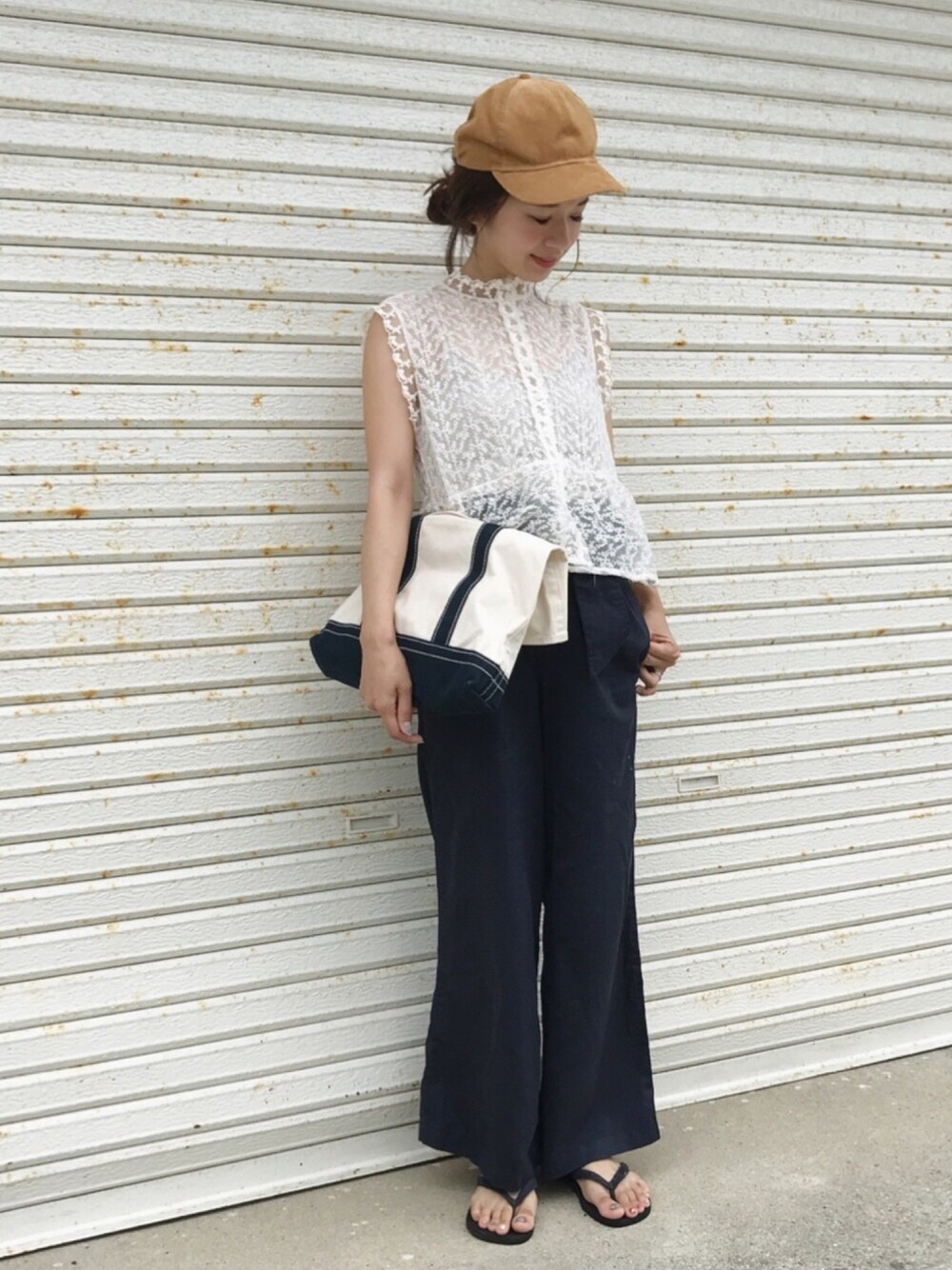 甘いレースブラウスは ボーイッシュに合わせたくなる👦 秋にはスウェットの中に着よう♪ ネイビーパンツは大好物なハイウエスト! 季節問わず履けそう😍 Instagram blogは プロフから飛べます🛫♡