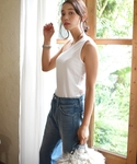 ワンショルダータンクに カーキシャツをえり抜き♫ Instagram 日々更新♫ blogに別ショット&同じワンショルダータンクでの別コーデを載せました。 良かったら遊びに来てください💓