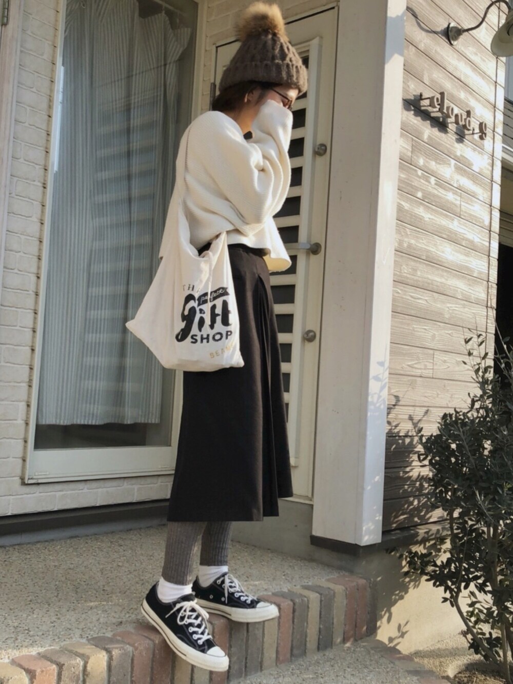 miisuuzuukiiのニットキャップ/ビーニー「via j(ヴィアジェイ) ケーブルラクーンポンポンニットCAP」を使ったコーディネート