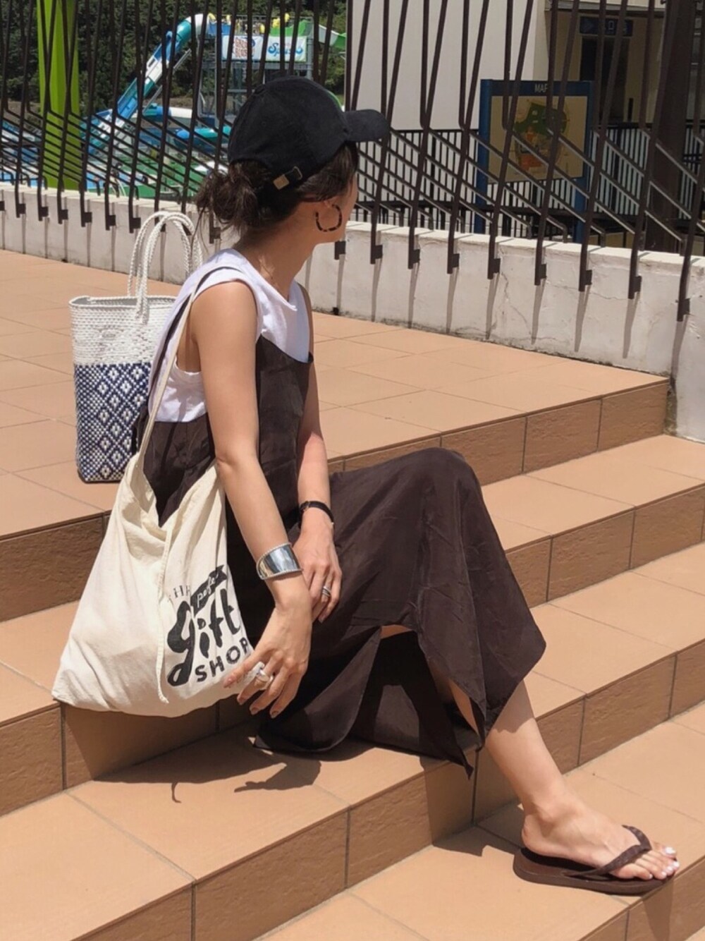 プールへ。 ささっと 脱着しやすい ワンピースで🏊♂️
