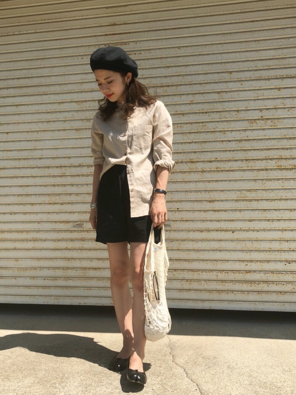 黒とベージュ🐴 シャツは AKTE。