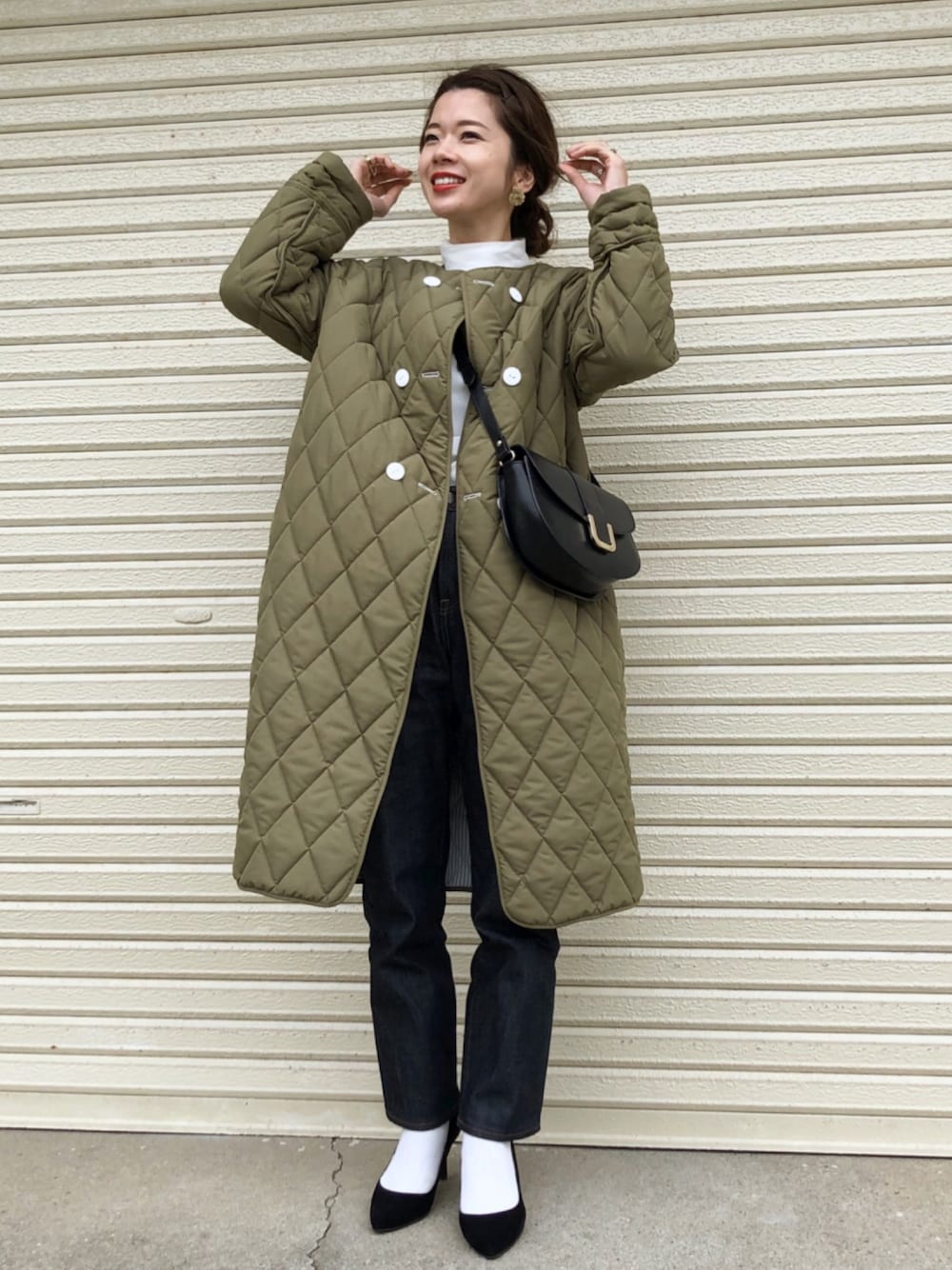 miisuuzuukiiのその他アウター「ノーカラーキルティングコート」を使ったコーディネート