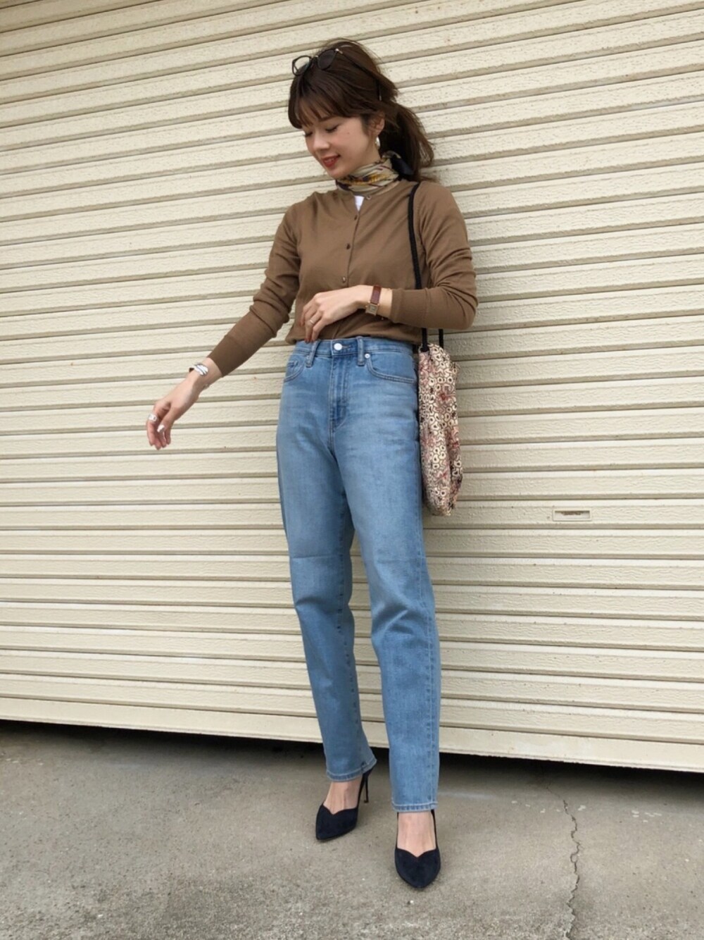 ユニクロの ハイライズストレートジーンズに メリノカーデ🌿