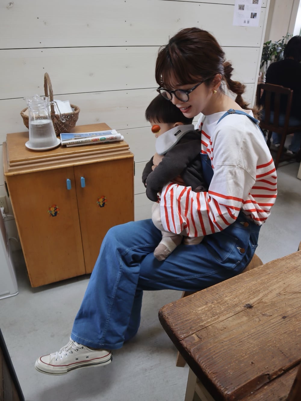赤ボーダーにデニムに 黒縁メガネ もうそれは、、 ウォーリー👓