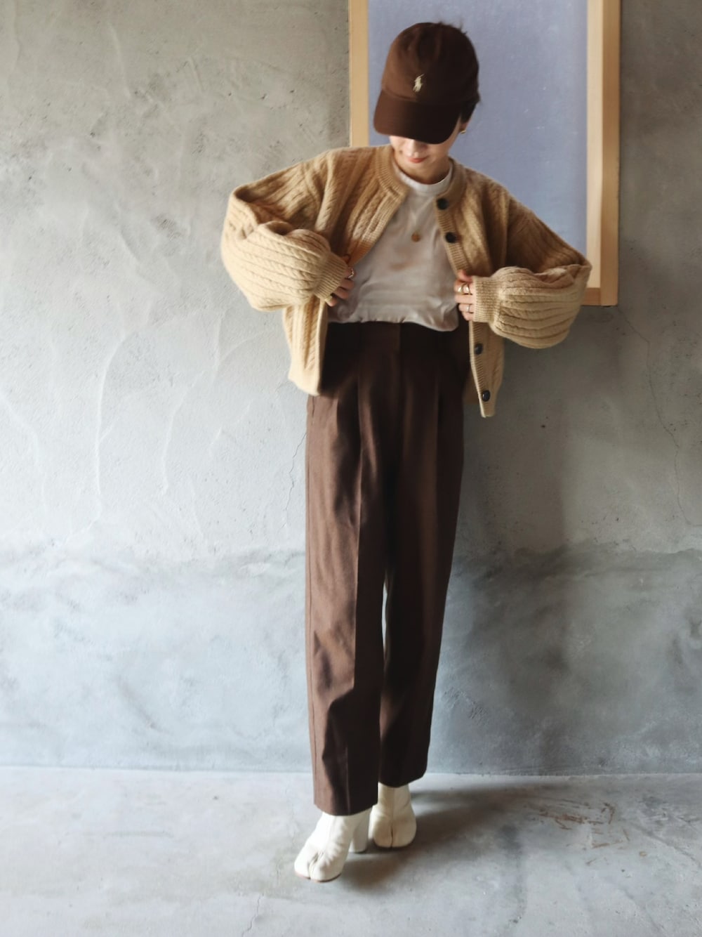 ベージュとブラウンの コーデ。 モンブランみたい。。。🌰 ëpaニットカーディガン made in japan🌏 今夜21時から予約販売です🤎 @_epa___